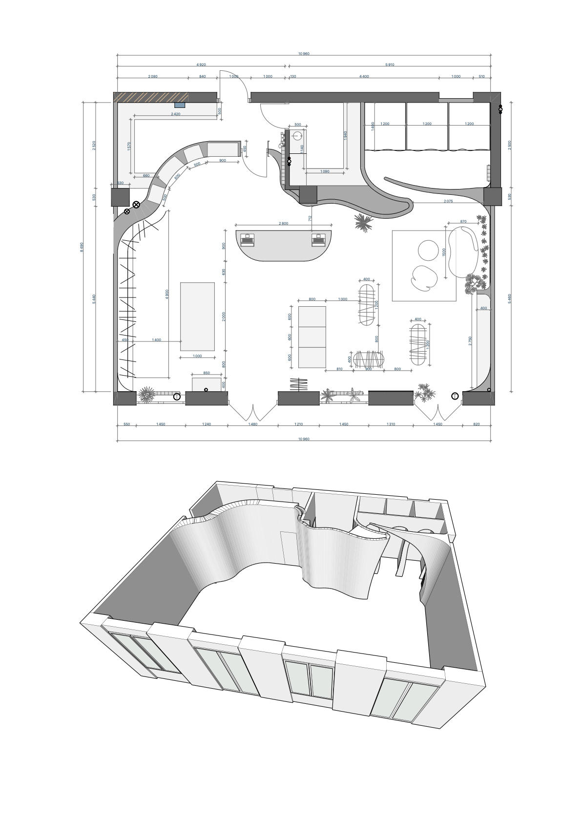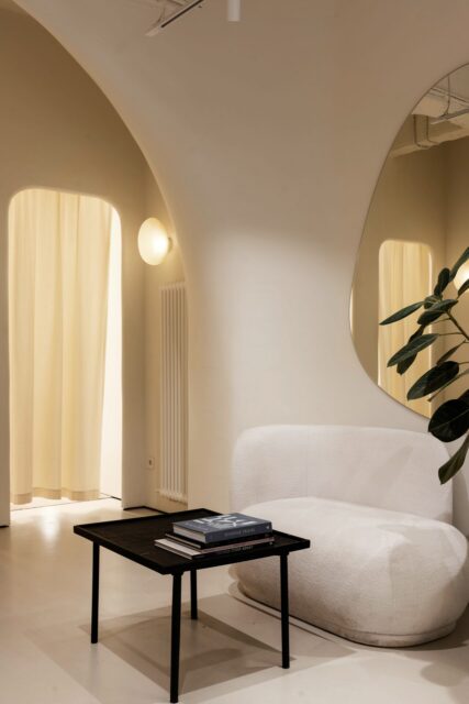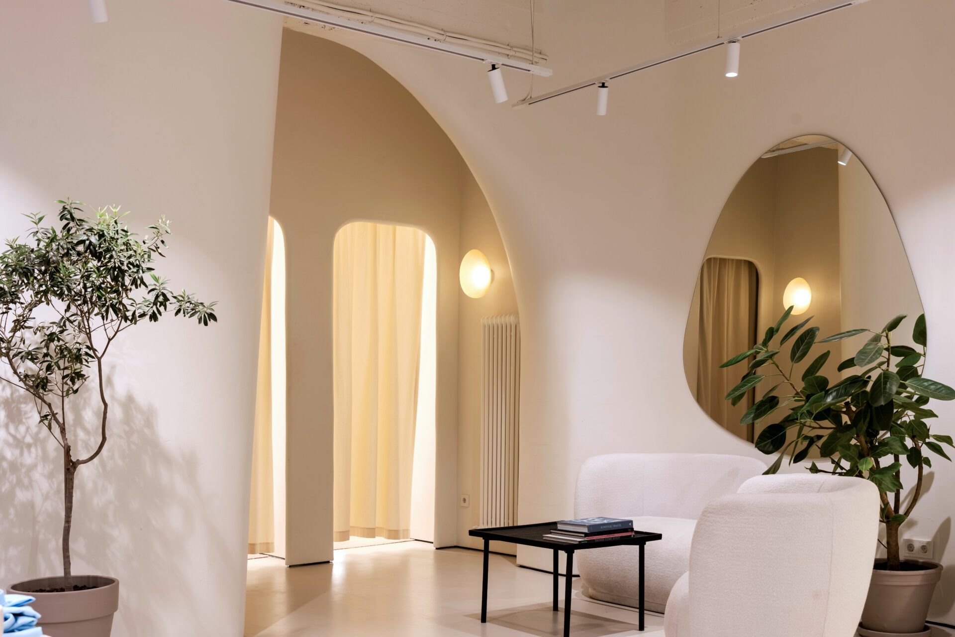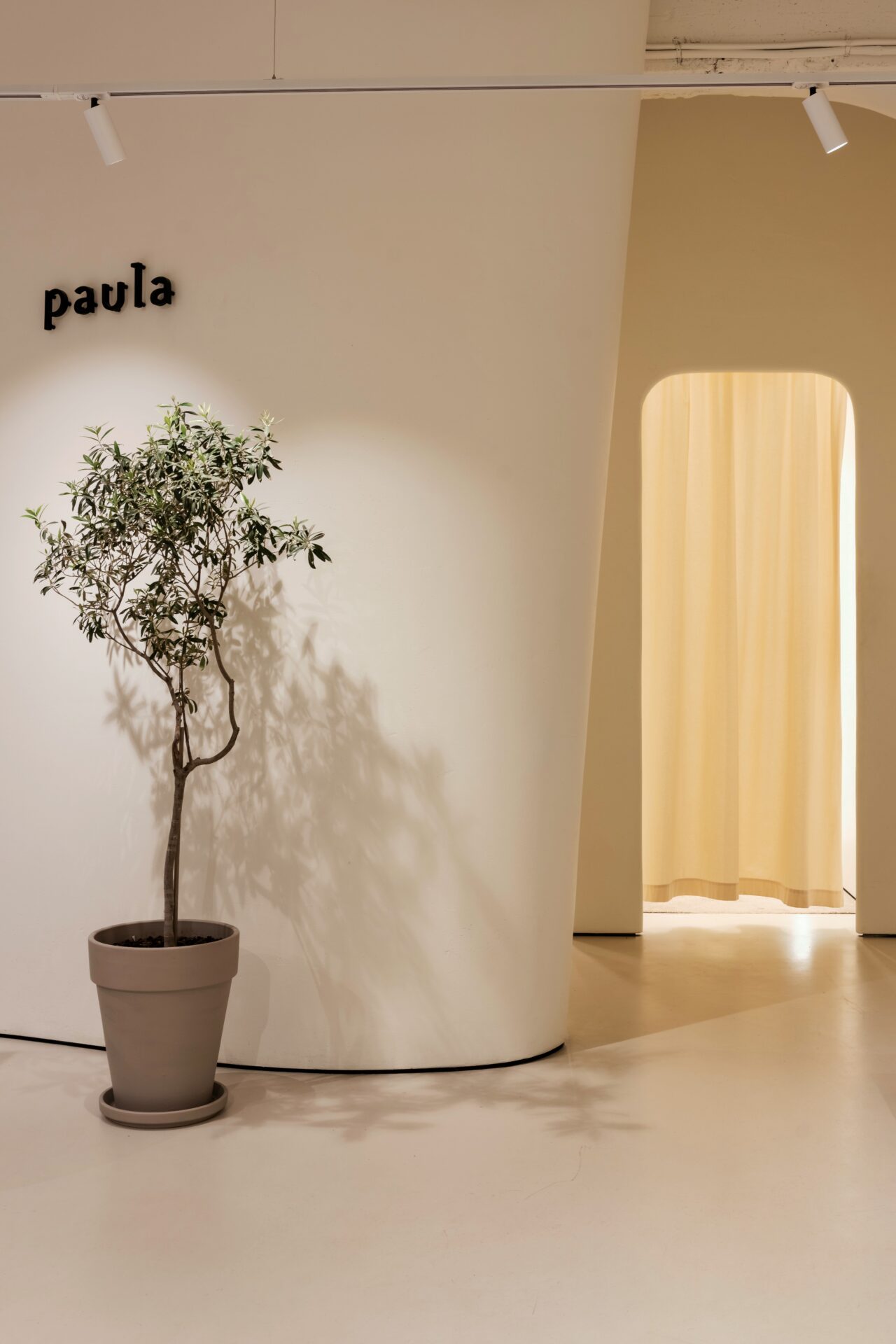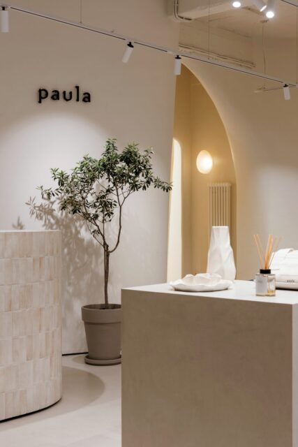 Плавные формы и линии новых решений пронизывают прежние конструкции и формы здания, построенного в советский период, при этом, фактура отдельных частей первоначального облика была сохранена в первоначальном облике. Минимализм интерьера, натуральность используемых материалов и сдержанные цвета, должны отобразить философию бренда Paula.