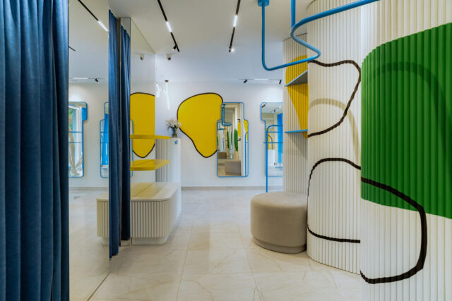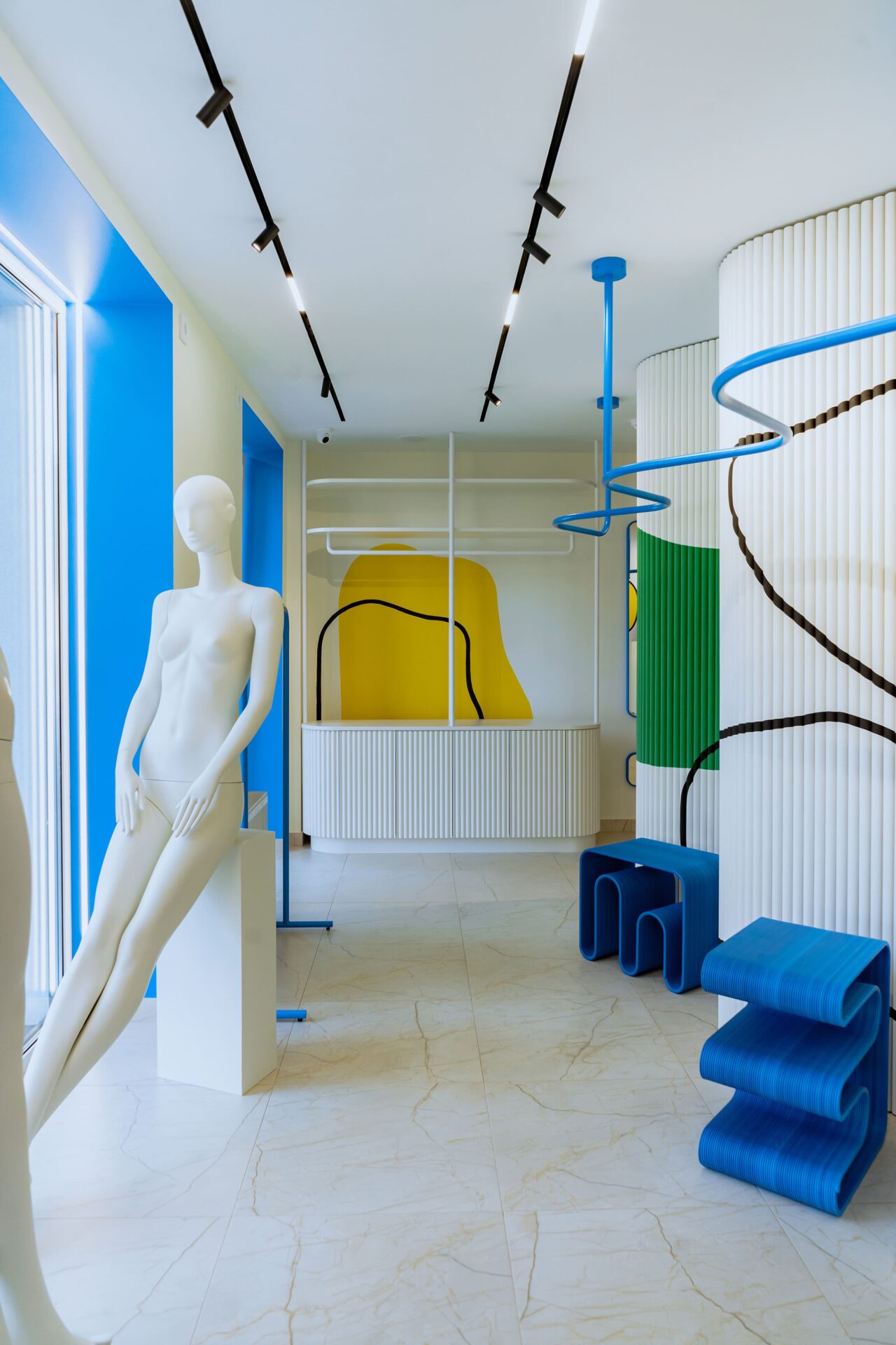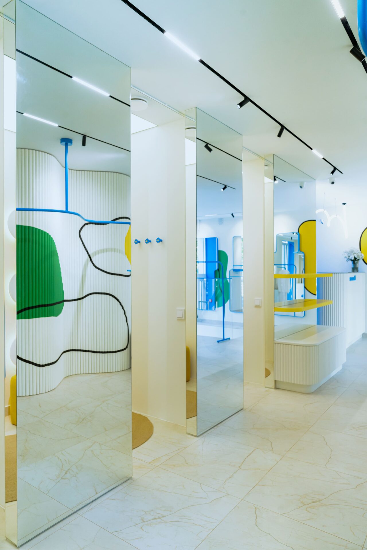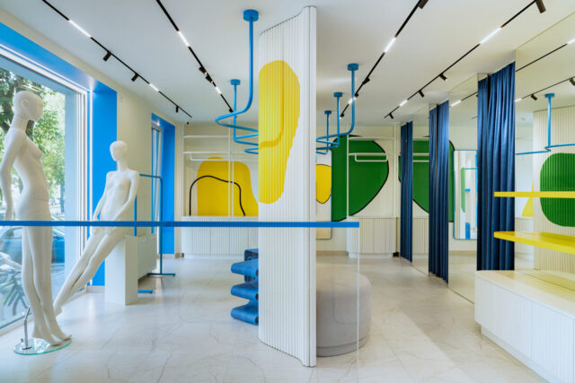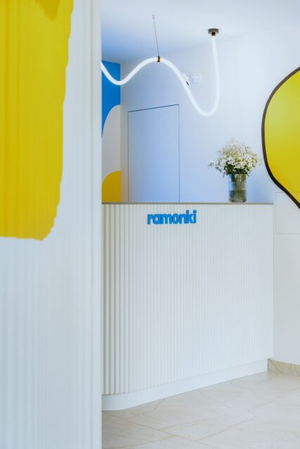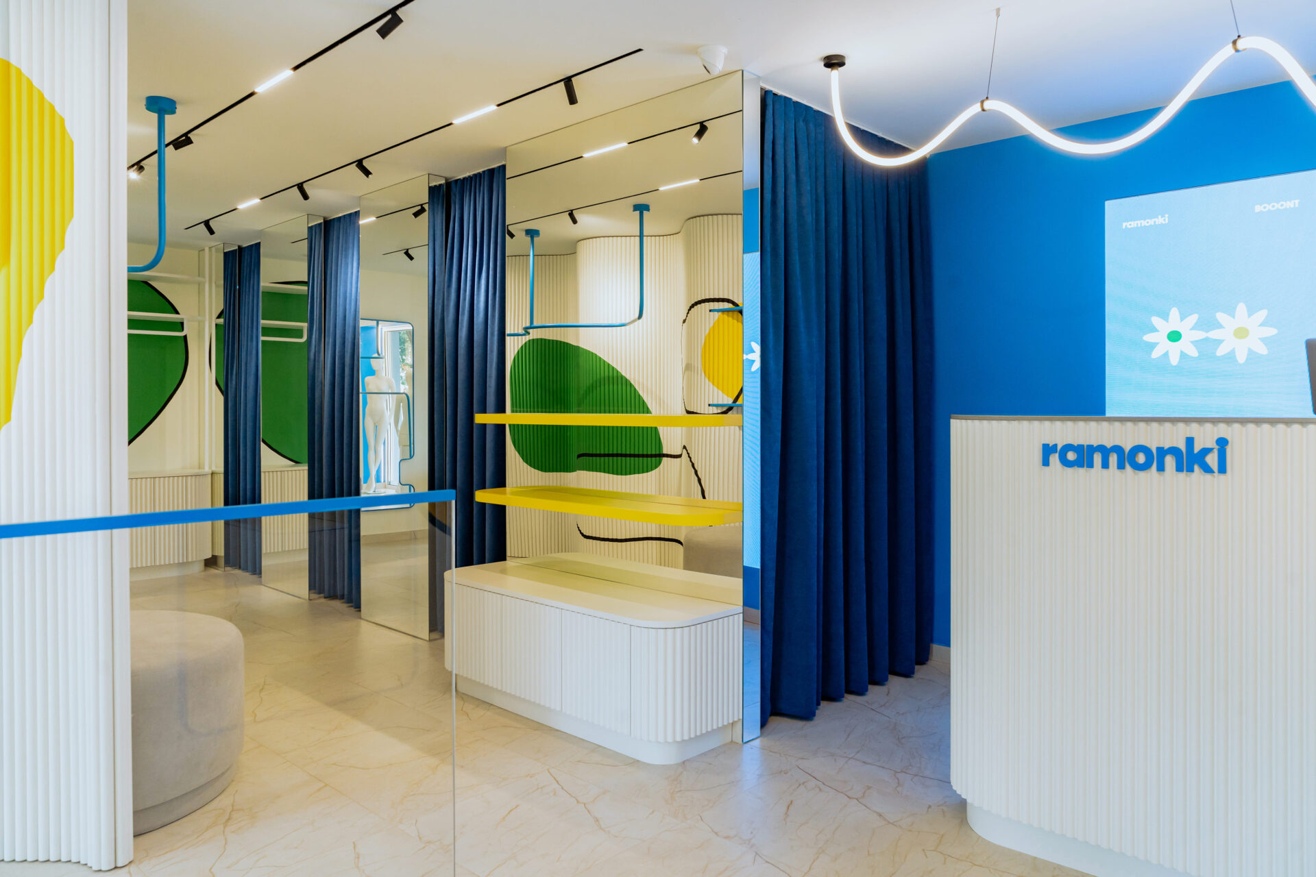 В этом проекте большое внимание было уделено освещению и деталям. Дизайнерские манекены, зеркала в виде пазлов, крючки Daisy (логотип бренда Ramonki – Ромашка).